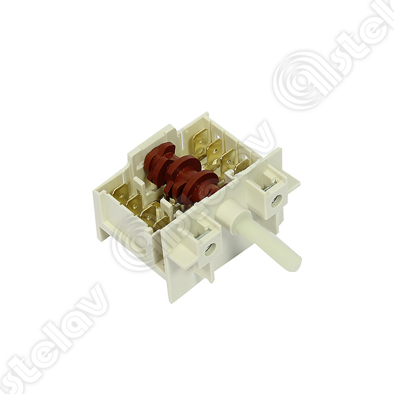 Ключ 7-тактов, 6+0 степени, съвместим с различни марки битови готварски печки като AMICA (АМИКА), HANSA (ХАНСА) и др. Товароспособността му е 16А при 250VAC (10A при 400V).