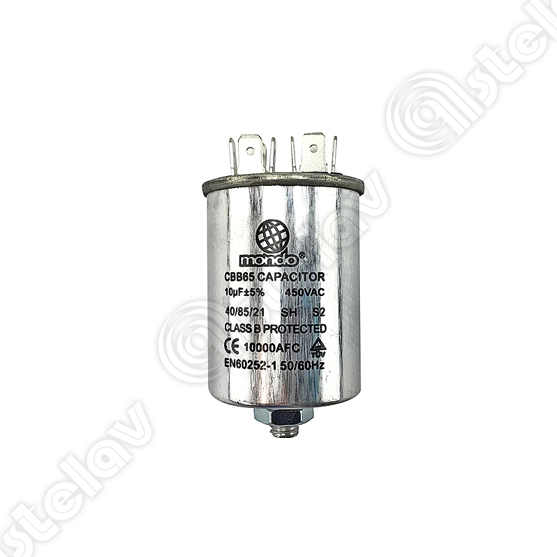 Капацитет: 10 uF Напрежение: 450V Продължителност: 3000h Faston: 4+4